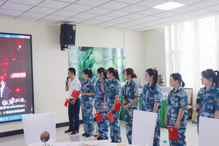 集团董事长孙荣祥、副总经理张凤林、副总经理兼办公室主任孙振前、营销公司总经理李哲吉;集团领导集体成员、财务部部长李如宇以及海南沁味康公司总经理许彦斌等部分领导干部;亿鑫公司全体领导干部;全体退役军人以及集团全体经营、管理人员参加了本次活动。
